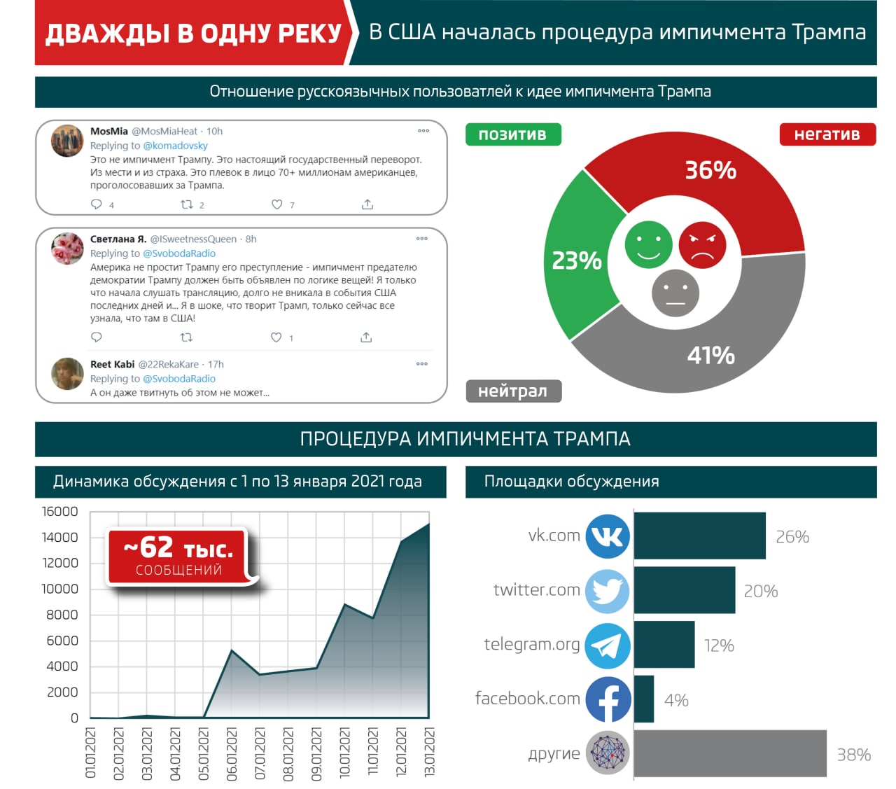 Именно такую позицию высказывает большинство русскоязычных пользователей социальных медиа. При этом аудитория расходится во мнении о правильности самой идеи импичмента. Многие встали на сторону Трампа после блокировки его аккаунта на платформе Twitter, назвав этот шаг явным проявлением цензуры. В то же время некоторые пользователи высказываются за отстранение Трампа и даже удивляются, почему это не было сделано раньше.