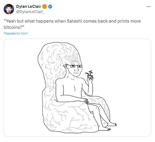 😁 «Да, но что произойдет, когда Саташи вернется и напечатает еще биткоинов?»
