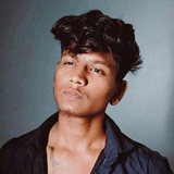 A young man sits on a wooden surface, gazing down thoughtfully. He has styled, voluminous hair and a well-groomed beard. He wears a white, unbuttoned shirt over a black undershirt, paired with dark jeans. Behind him is a large, glowing pink circle that creates a dramatic contrast against the dark background, highlighting his contemplative expression. The overall mood of the image is introspective and artistic. I want exact same face.