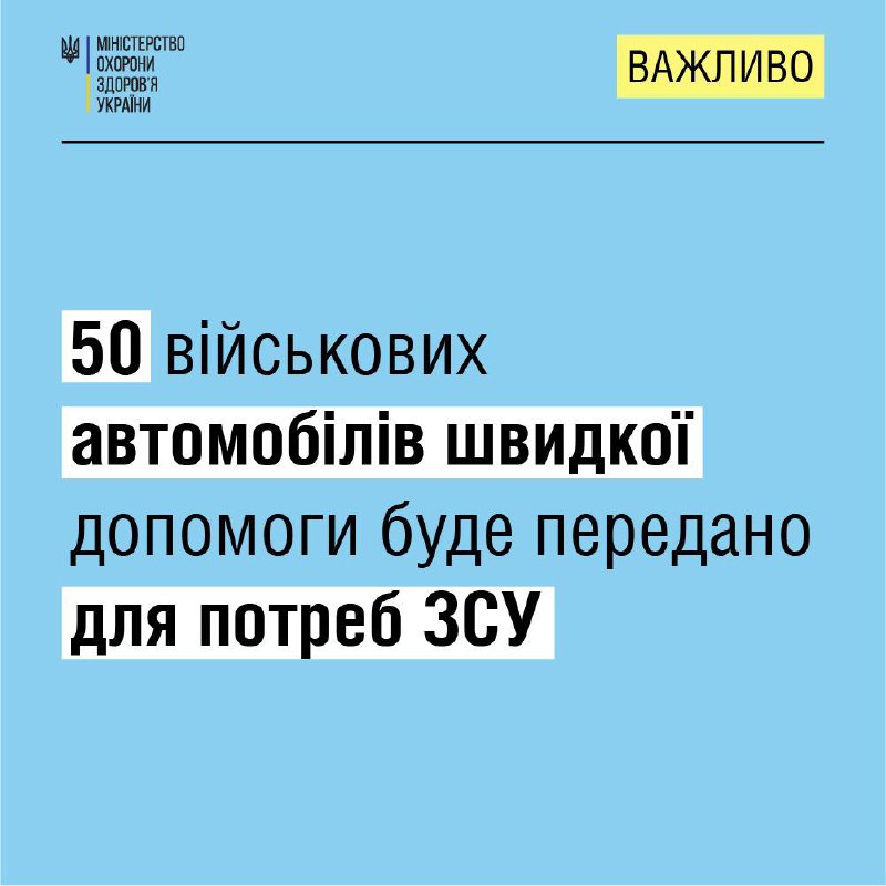 ☝️+50 автівок швидкої медичної допомоги для ЗСУ.
