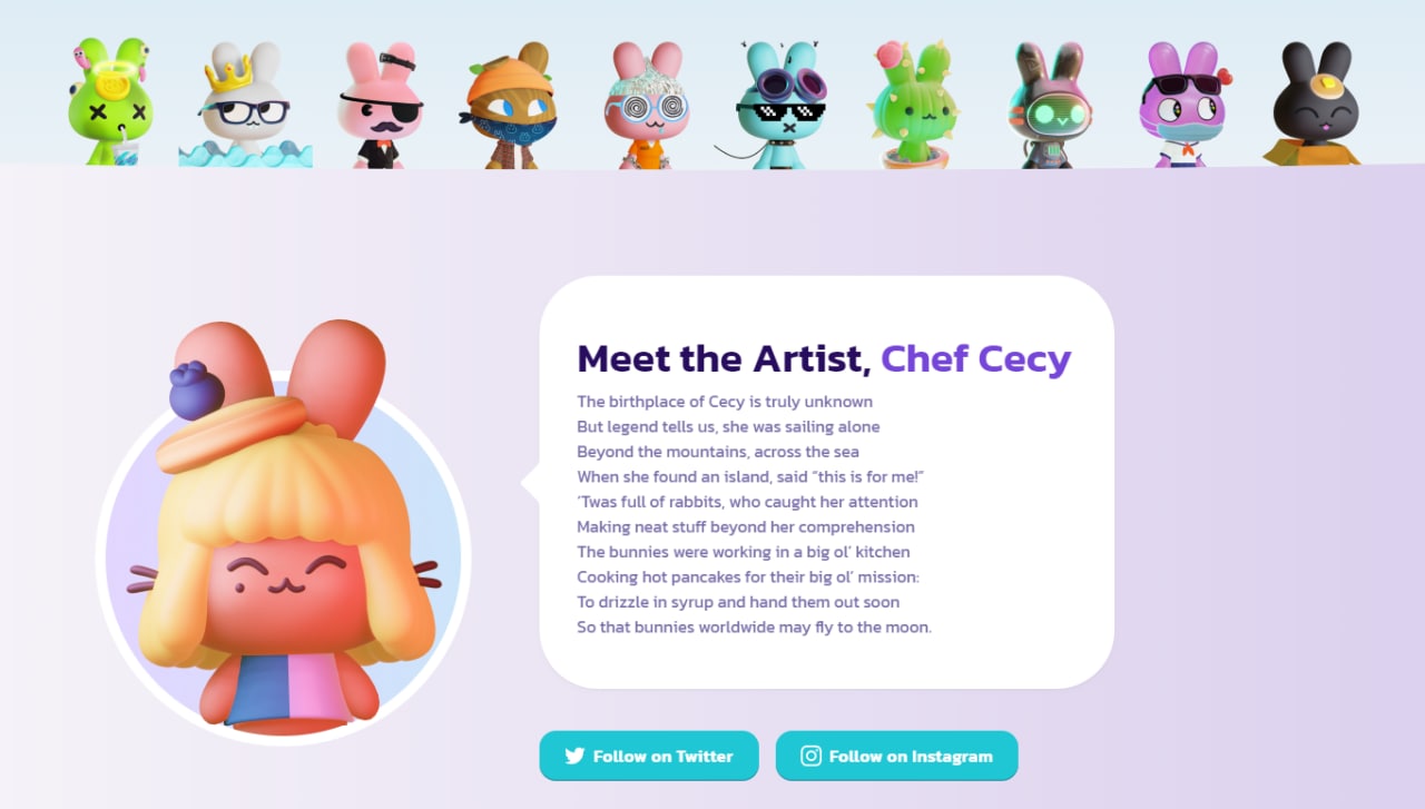 ▫️Каждый кролик в Pancake Squad индивидуален. Все они случайным образом генерируются из более чем 200 различных функций с более чем 8 МИЛЛИАРДАМИ возможных комбинаций, так что ни один кролик никогда не будет абсолютно одинаковым.