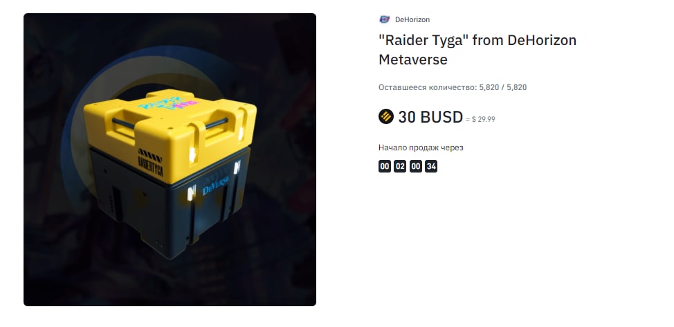 🧧Через 2 часа на🔸Binance пройдет сейл паков "Raider Tyga" from DeHorizon Metaverse