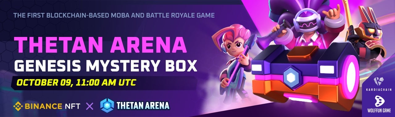 ▫️Мистери-бокс Thetan Arena Genesis — это эксклюзивное мероприятие для пользователей Binance, позволяющее им получить доступ к бета-версии игры Thetan Arena на раннем этапе. В этом боксе пользователи найдут три типа билетов — General, Epic и Legendary, чтобы получить Thetan Boxes и Heroes of Creation во время официального выпуска Thetan Arena.
