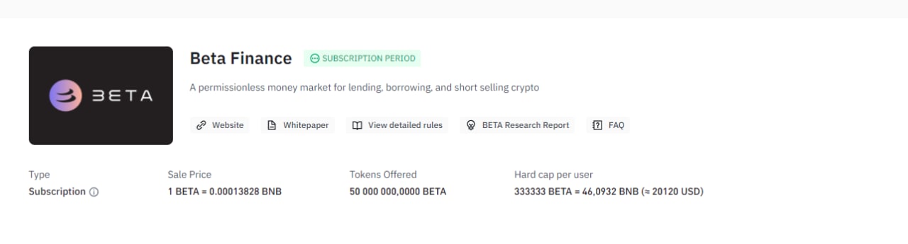 ▫️Условия сейла:— 1 BETA = 0.00013828 BNB (0.06$)