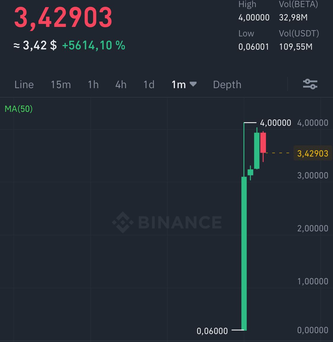 $BETA первые 20 минут торгуется по 3-3,5$ (скорее всего пойдет на коррекцию)