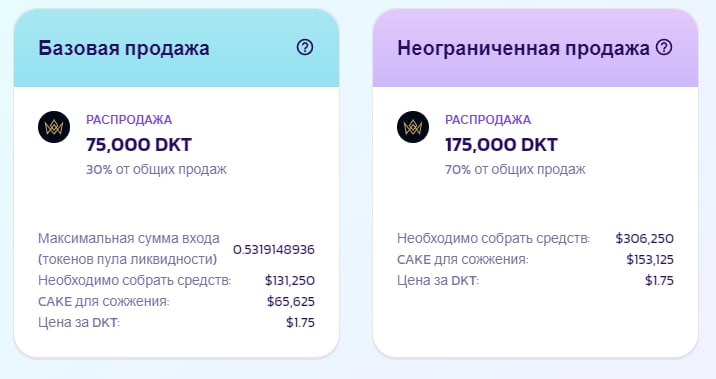 • Цена за 1 токен DKT = 1,75$Для участия обязательно нужно иметь профиль на PancakeSwap, который стоит 1,5 $CAKE — 📎ссылка