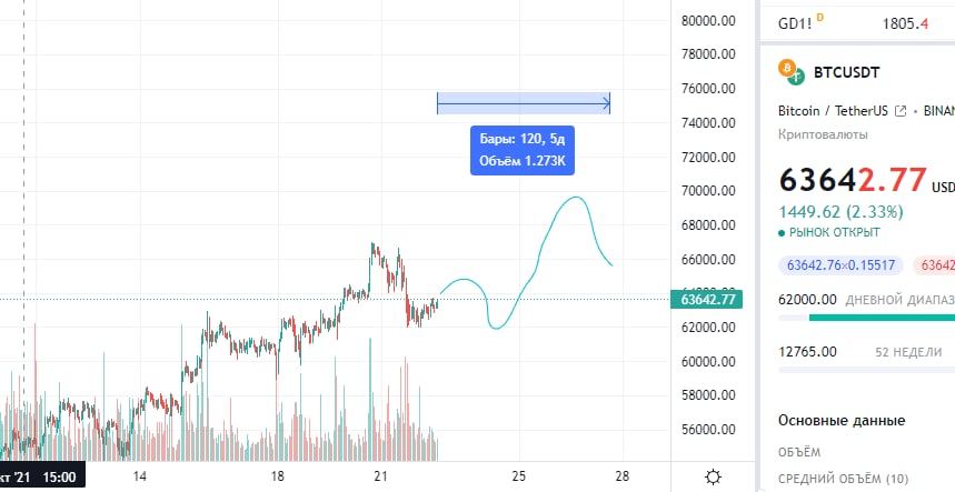 • Кидаете в комментарии скриншот графика BTC (свечи 1h) с предсказанием цены на 5 дней вперед.