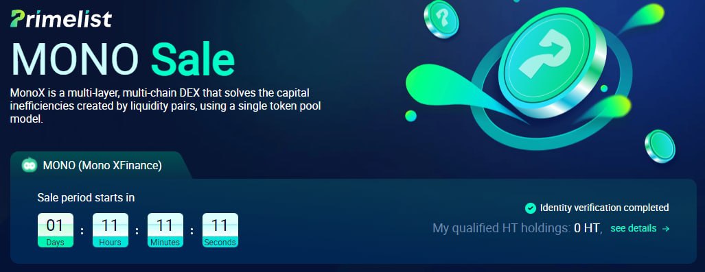Два часа до Primelist MONO на HUOBI