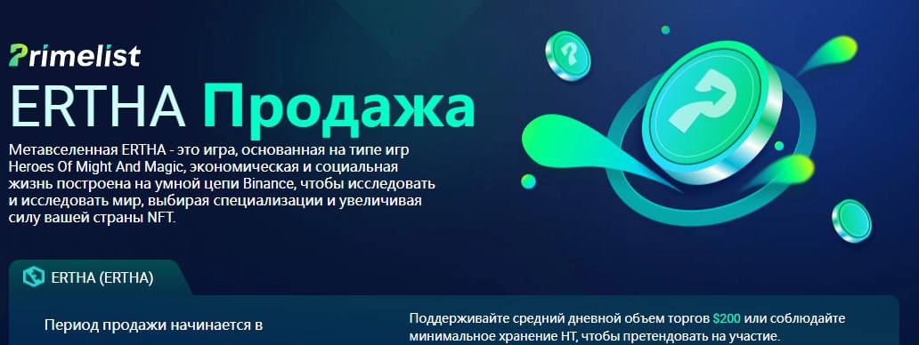🔹Новый праймлист ERTHA на HUOBI