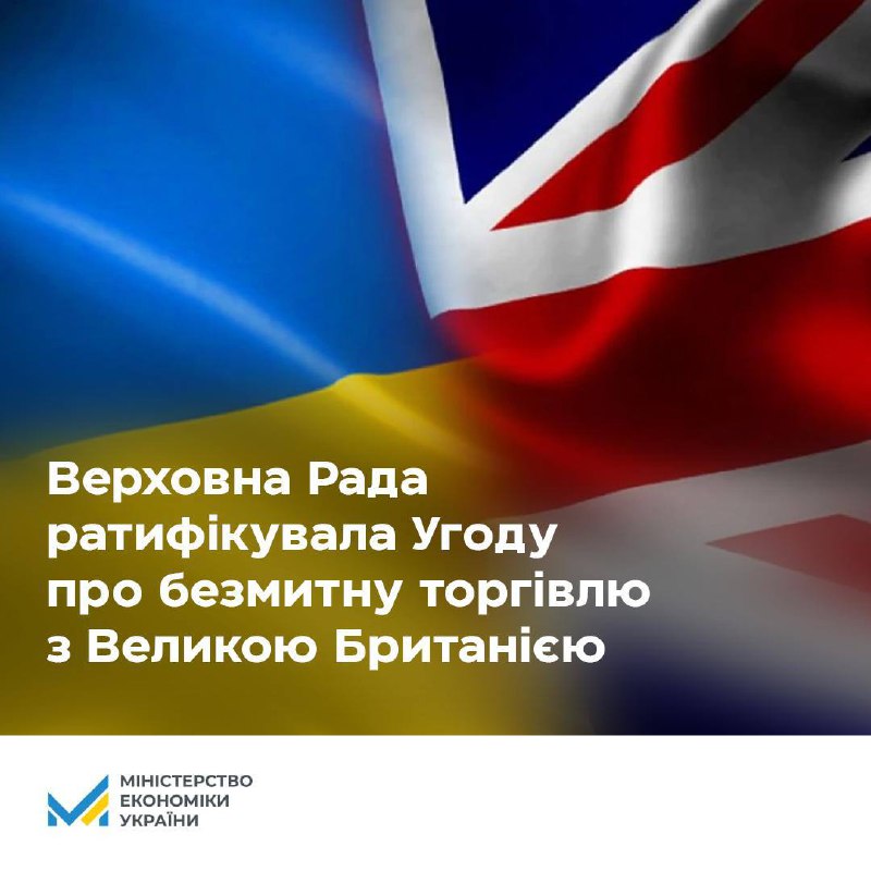 Верховна рада ратифікувала угоду із Великою Британією про режим безмитної торгівлі та стратегічне партнерство — Міністерство економіки України.