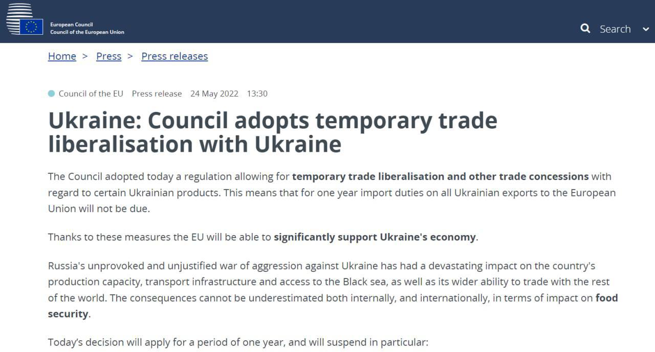 Протягом року українські компанії можуть постачати в Євросоюз свою продукцію без мит - Рада ЄС повністю скасувала всі мита на українські товари
