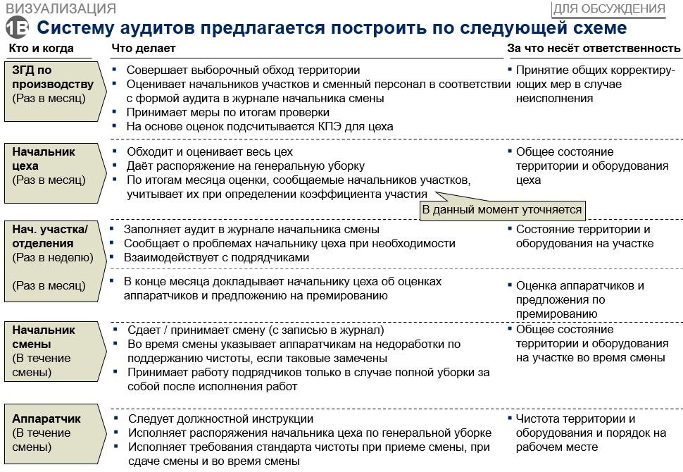 - После ухода консультантов, эта структура остается на производстве, и уже руководитель подразделения обсуждает со своими подчиненными