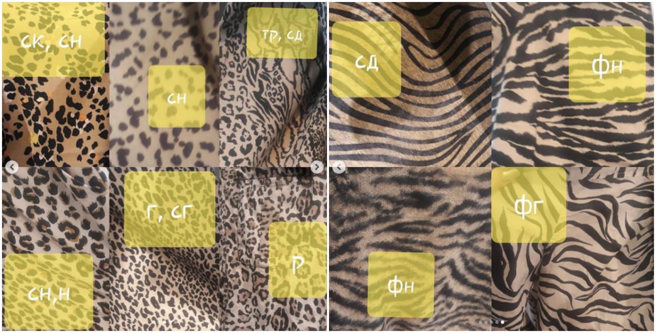 "Леопардовый" принт часто Софт Натурал ( мягкие контуры, округлость, детальность средняя и чуть выше). При более крупных размерах принт подходит и Натуралу ( левый нижний угол). При более четких контурах и соблюдении одного размера пятен подойдет еще и Софт Классику ( левый верхний угол), если его проредить, но оставить пятна аморфными, все равно останется СН( наверху в середине), а если принт останется мелким, но контуры будут четче, а пятнышки компактнее, — будет Гамин и Софт Гамин.