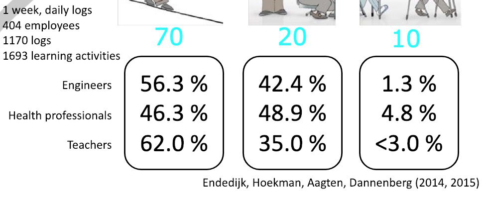 Суть его в том, что 70% мы учимся на практике, 20% - общаясь с другими, и только 10% - изучая теорию.