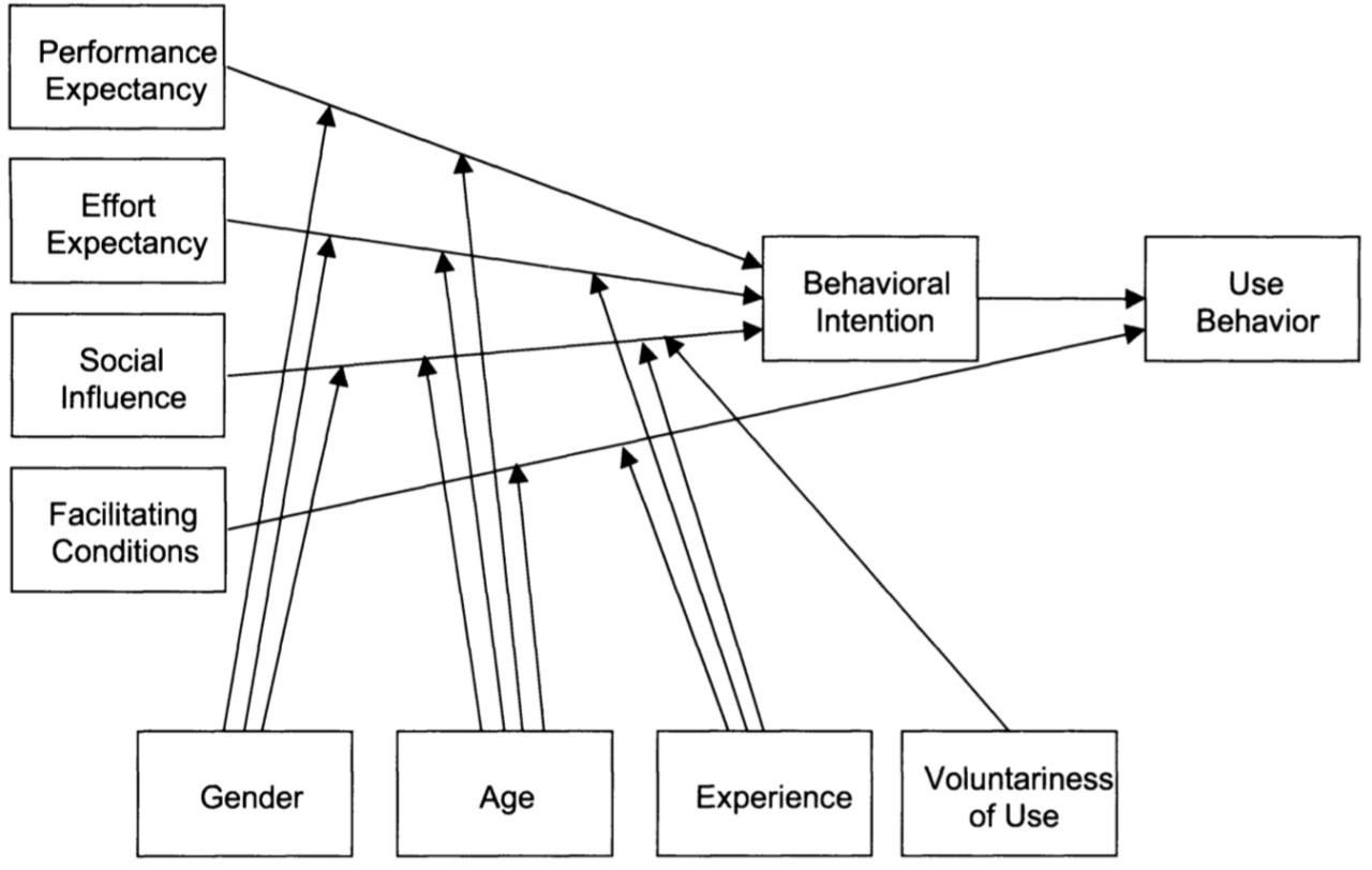 ⚠️Но эти пункты имеют разное влияние в зависимости от пола, возраста, опыта использования этой технологии и добровольно или принудительно участники использовали эту технологию. Так, например, Performance Expectancy имеет большее влияние на использование (или нет) новой технологии для мужчин и молодых работников (пол и возраст).