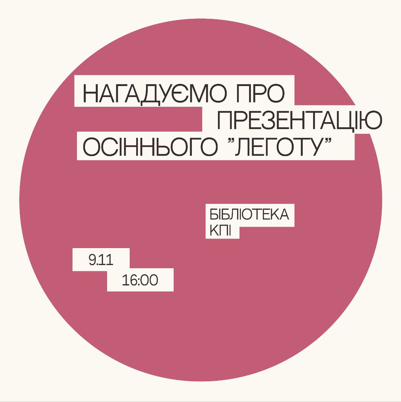 Літературний журнал «Легіт» запрошує вас відвідати подію на честь осіннього випуску журналу.