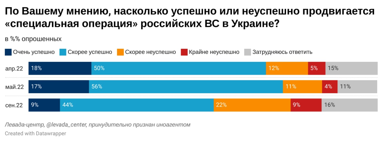 После объявления частичной мобилизации внимание к украинским событиям и обеспокоенность происходящим резко выросли. Новости о частичной мобилизации вызвали в обществе тревогу и страх. Поддержка действий российских военных остается высокой, но увеличилось число тех, кто выступает за начало переговоров.