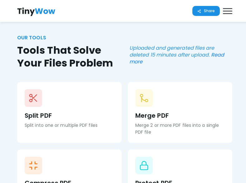 All files, both processed and unprocessed, are deleted from the server after 15 minutes.