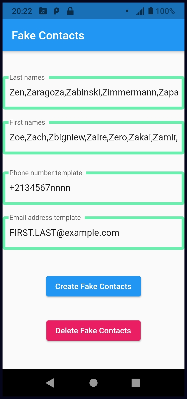 Sooner or later, the leakage of personal data can happen to anyone, no one is immune from this. Fake Contacts is an application that creates fake contacts in your phone book.