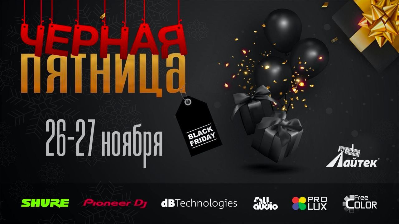 26-27 ноября – скидки до 35% на избранные позиции от брендов: Shure, Pioneer DJ, dBTechnologies, Pro Lux, Free Color, 4all Audio