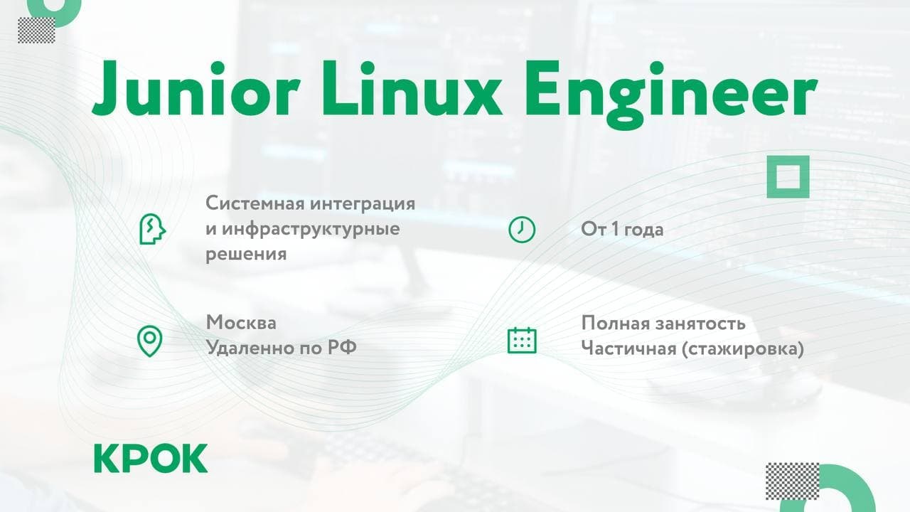 Откликнуться на вакансию: https://www.croc.ru/vacancy/junior-linux-engineer-3/