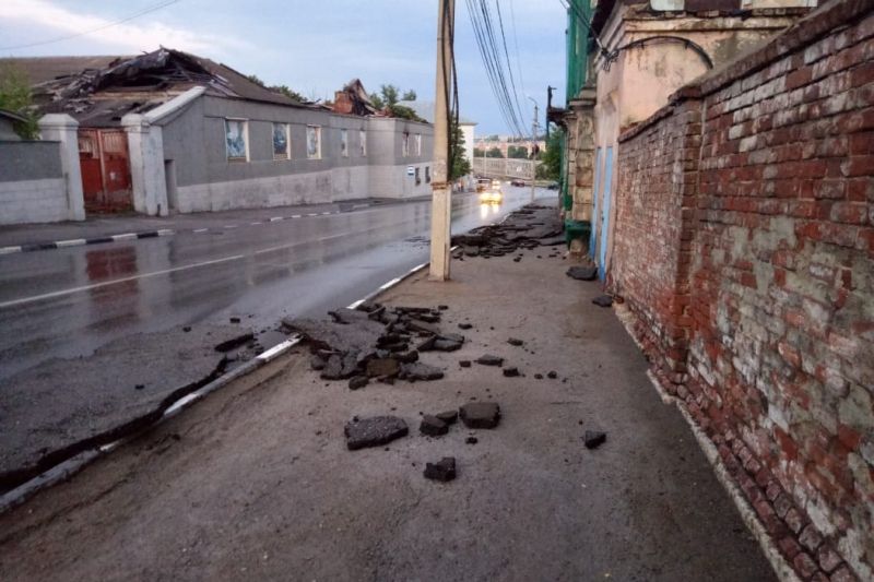 На улицах города, где в эти дни проводились дорожные работы, смыло асфальтовую срезку.Пласты старого асфальта вынесло на проезжую часть улиц К.Маркса, Линейной, Пушкина.