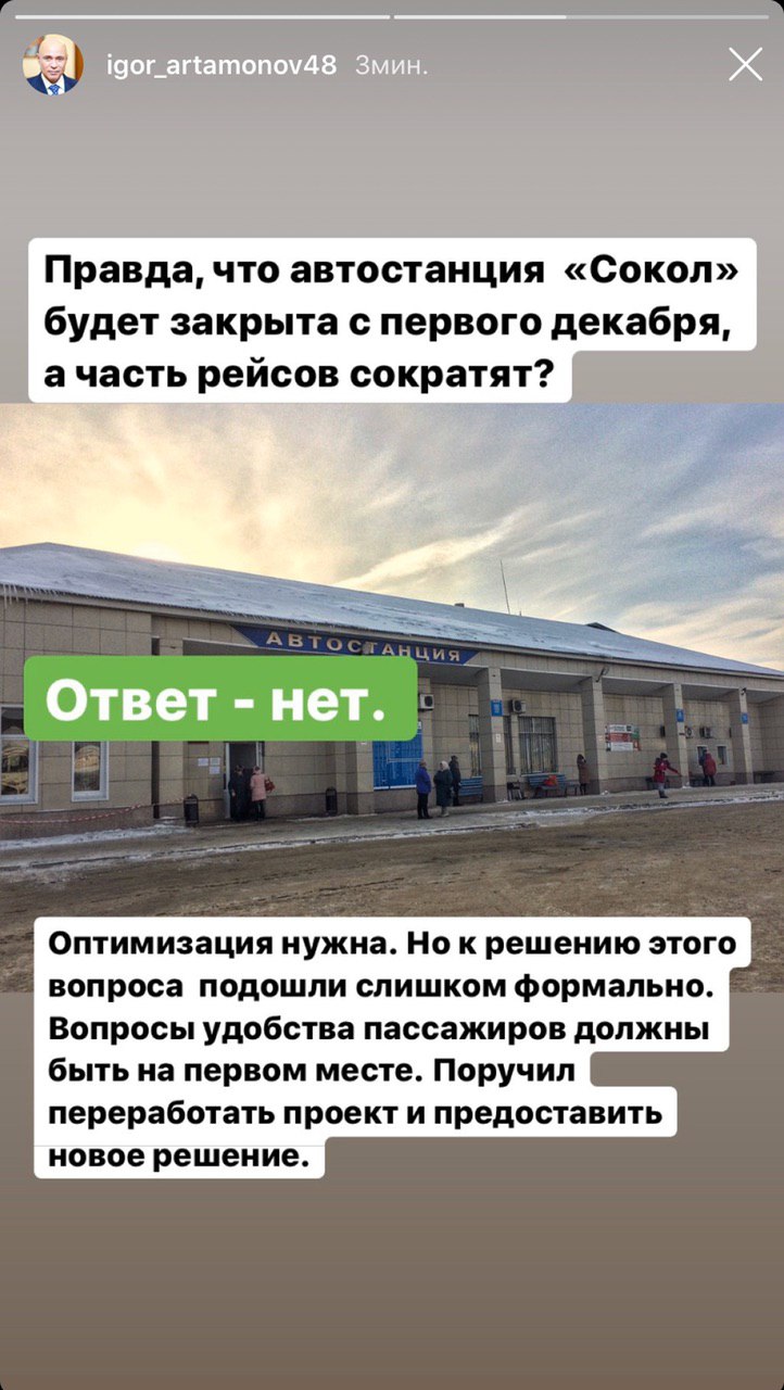 Игорь Артамонов в своём Инстаграм ответил на вопрос об оптимизации автобусного сообщения.