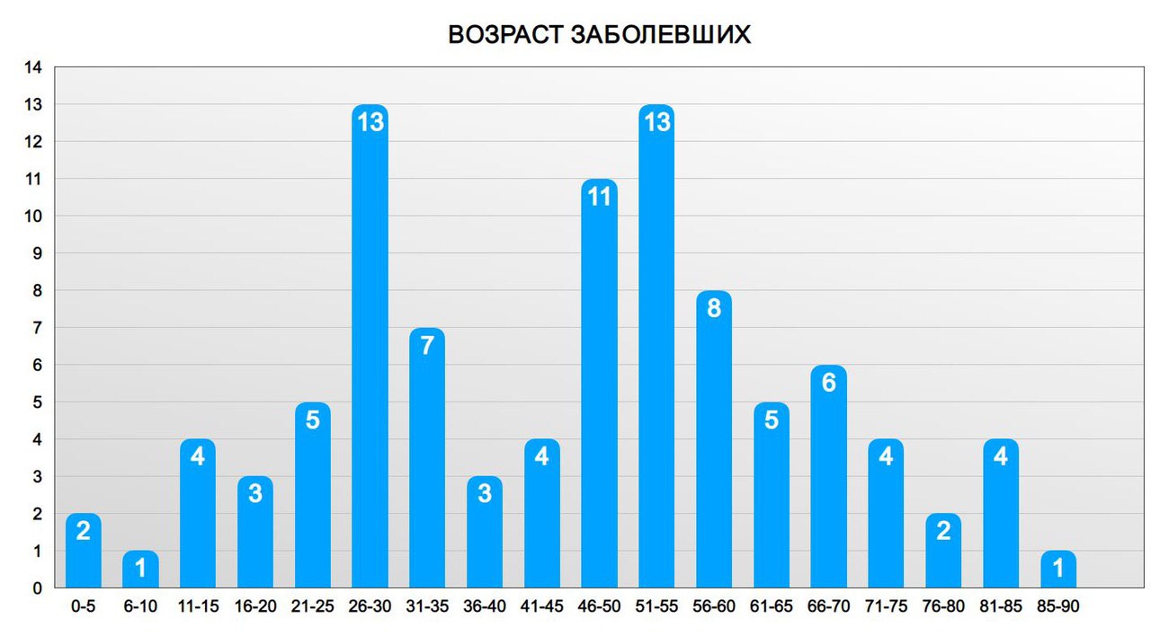 Возраст заболевших с момента начала эпидемии: