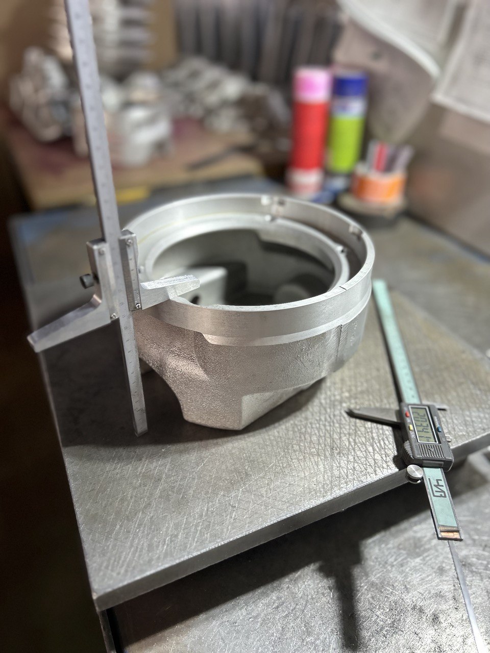 Деталь на фотографии проходит несколько этапов контроля: после заливки, после зачистки и после мех обработки.