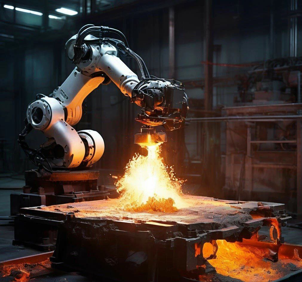 Исторический факт о применении промышленных роботов в литейном производстве связан с внедрением шестикоординатных (шестиосевых) роботов в процессы литья и обработки металлов. Эти роботы, благодаря своей гибкости и возможности работать в сложных и ограниченных пространствах, стали популярными в 1970-х годах. Тогда инженеры начали активно использовать их для выполнения сложных операций, таких как манипуляция деталями внутри формовочных машин и выполнение дополнительных задач между циклами работы машин.