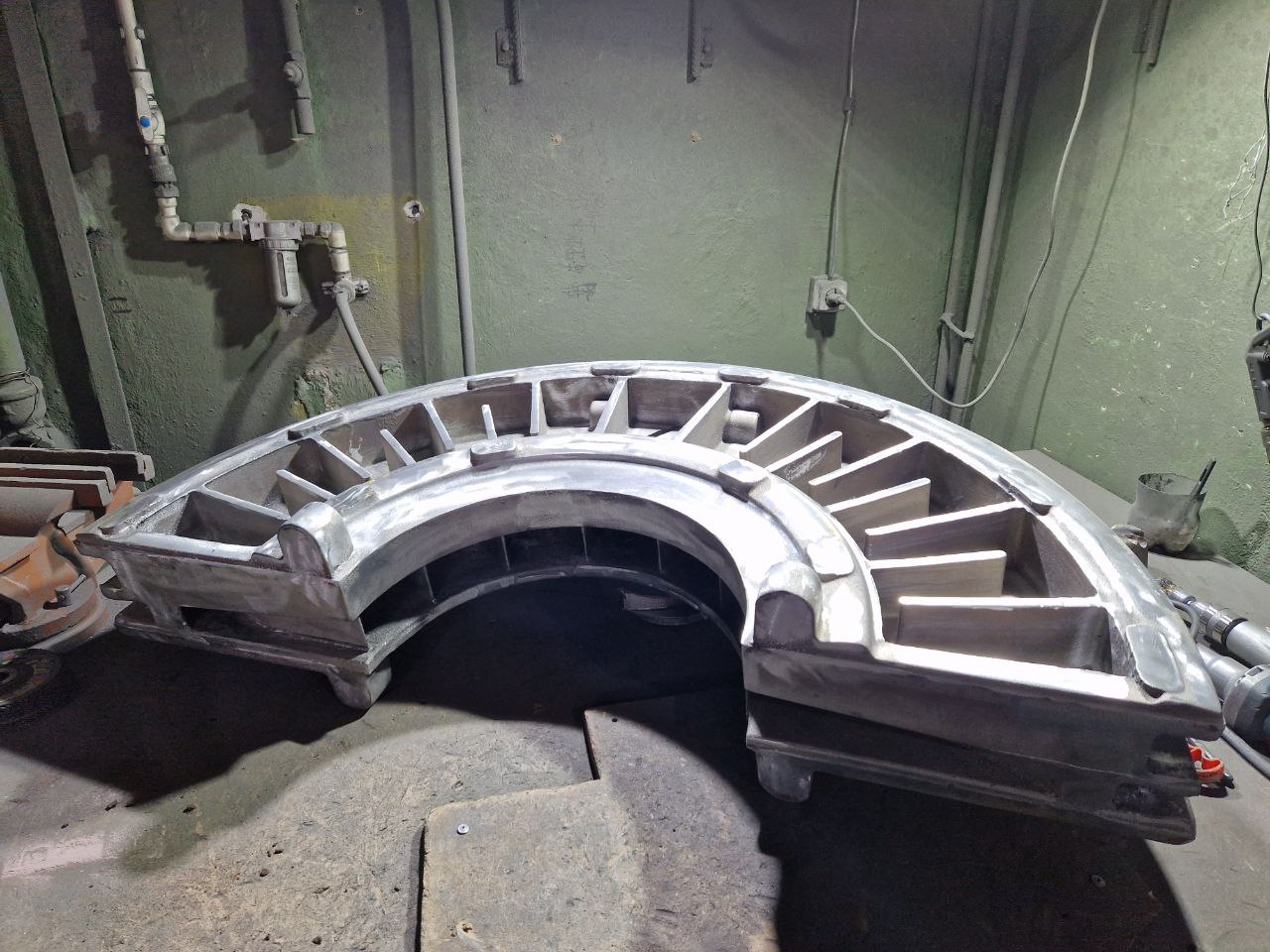 Завершили литье из алюминиевой бронзы БрА9Ж4Н4Мц1. После замены тигля переходим к литью оловянной бронзы БрО8Ц4.