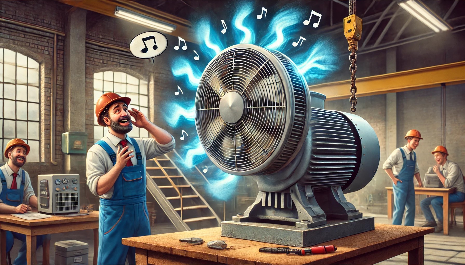 — Представляешь, наш новый вентилятор стал вести себя странно.