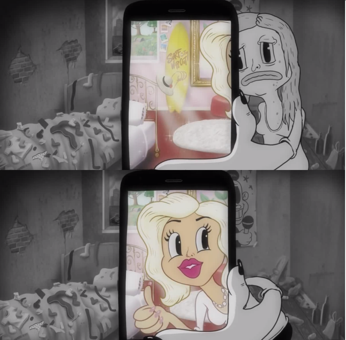 И еще мем в тему того, что часто мы скрываем свою грусть, а потому создается иллюзия, что у всех все супер хорошо. Когда все делают так, грустить и делиться грустью становится стыдно и непринято, в то время как это очень важно❤️