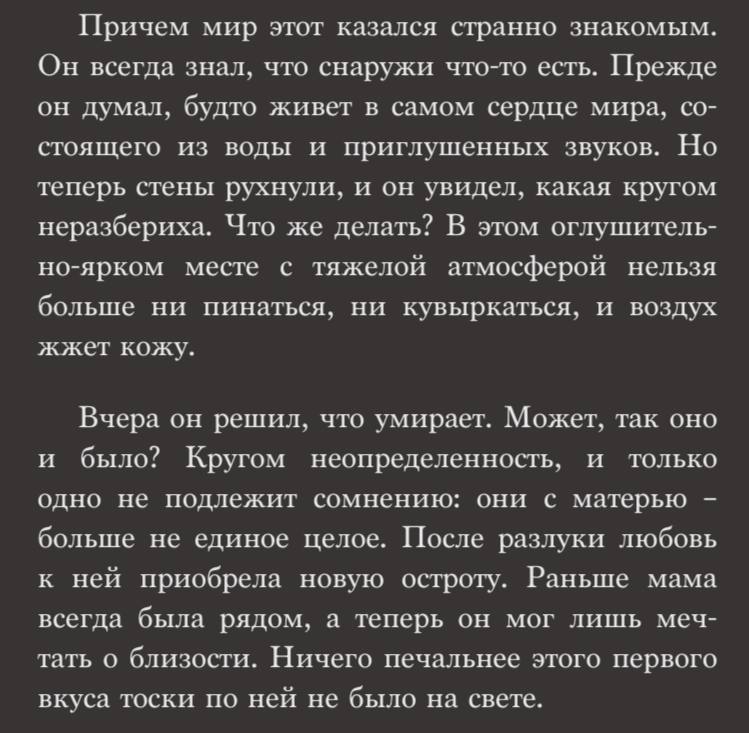 А как вам вот такое, например — целая глава в «Mother's Milk», в которой история рассказывается глазами Роберта — новорожденного сына Патрика. Ну, то есть, как история. «История» — это еще громко сказано.