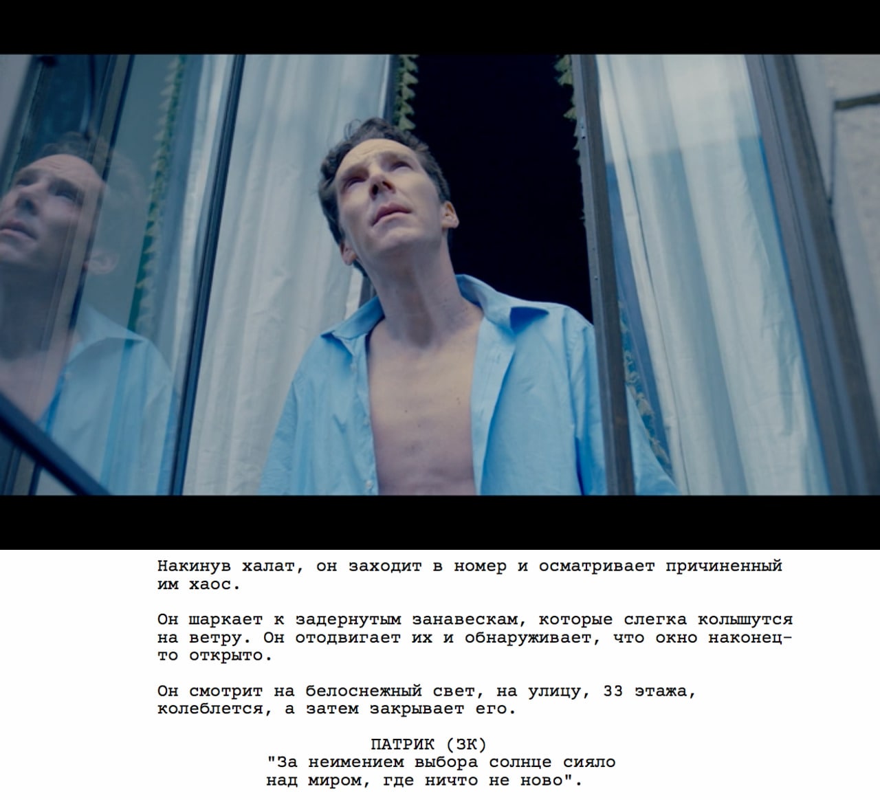 8) Флэшбэк. В сценарии мы не видим лиц, только голоса. А между Патриком и Дэвидом успевает развернуться пускай и короткий, но все же диалог, в котором сын предпринимает попытку убедить отца найти другой, более подходящий номер.