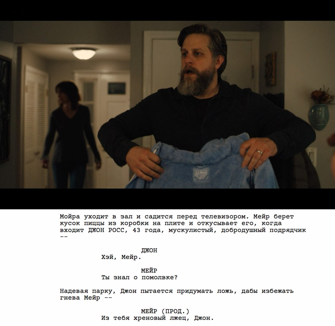 Никаких событий, действий, происшествий. Даже никакой новой информации для персонажей, которая заставила бы их выйти из сцены не такими, какими они сюда зашли. Нет, совершенно ничего. Мейр какой к Россам зашла, такой и вышла. Только с Лори и парой банок пива.