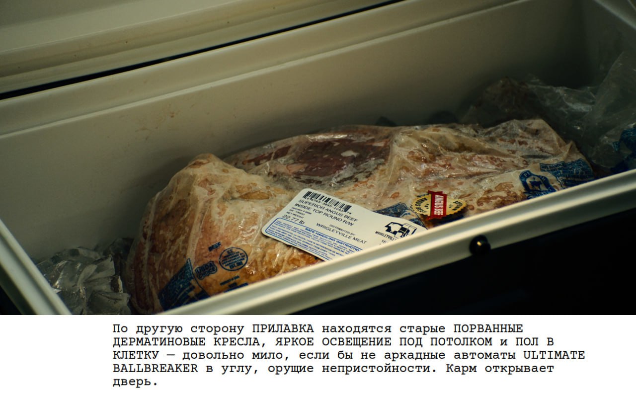 На второй странице сценария Карми сталкивается со второй проблемой — нехваткой мяса.