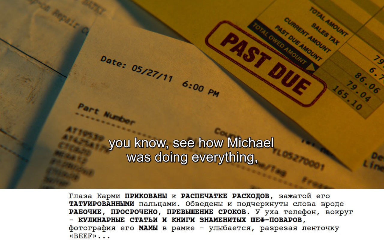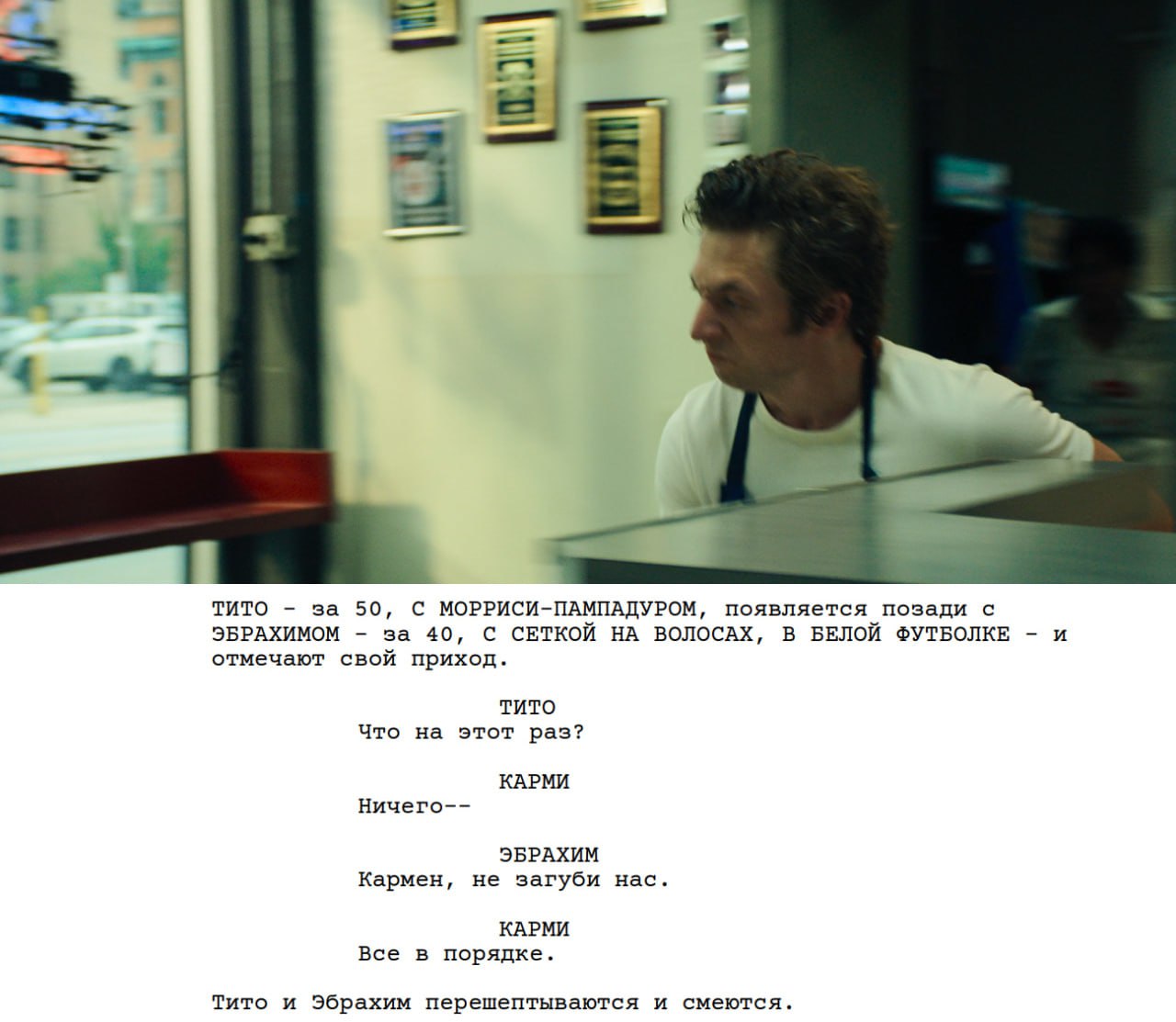 Так что в «Медведе» такой монтаж не только отлично рифмуется с нарративом, отражая множественность и хаотичность действия, но еще и является визуальной иллюстрацией отношений Карми с кухней.