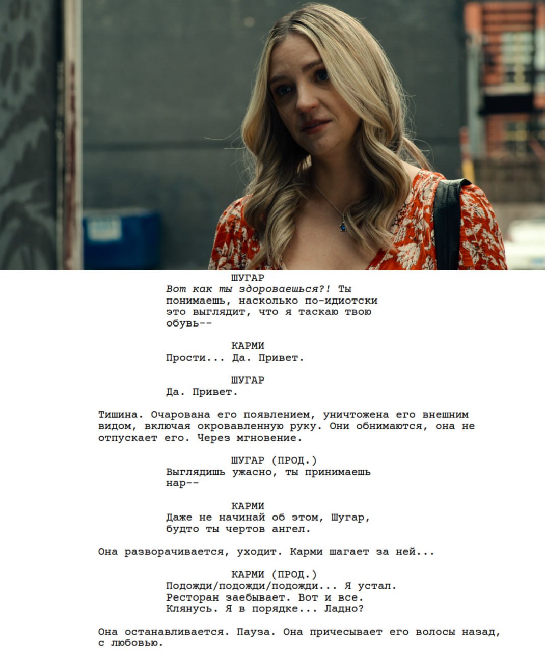 Именно по этой причине, я думаю, Сторер мог вырезать сцену срыва Карми на коллег, которая не попала в финальный драфт — хотя была отснята и даже помогла студии увидеть актерский талант Уайта. Потому что странно использовать один из методов брата для влияния на коллег, а потом еще и оправдываться за это, но не использовать его главный метод для спасения всего ресторана.