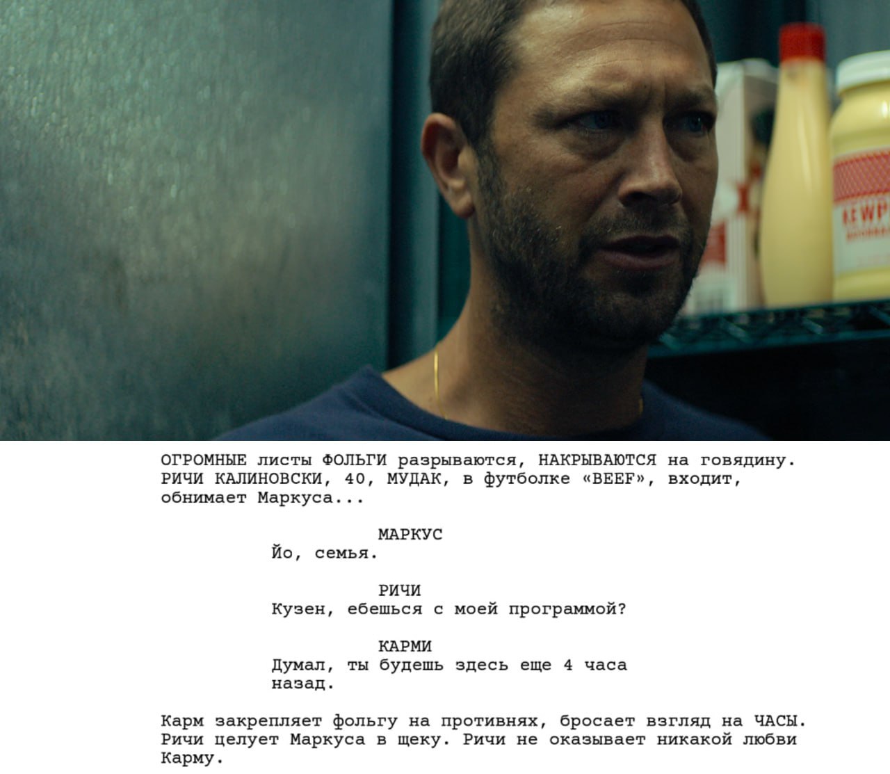 Самое громкое лицо на кухне «Бифа» — Ричи — Сторер описывает на бумаге всего одним словом: мудак. Довольно лаконично для персонажа, через которого подается 90% экспозиции про отношения Карми со своим братом, и исследуется одна из главных тем шоу — горе утраты.