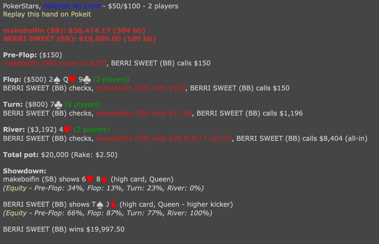BERRI SWEET и makeboifin продолжают свою хедз-ап дуэль. Последние несколько недель они играют $50/$100.
