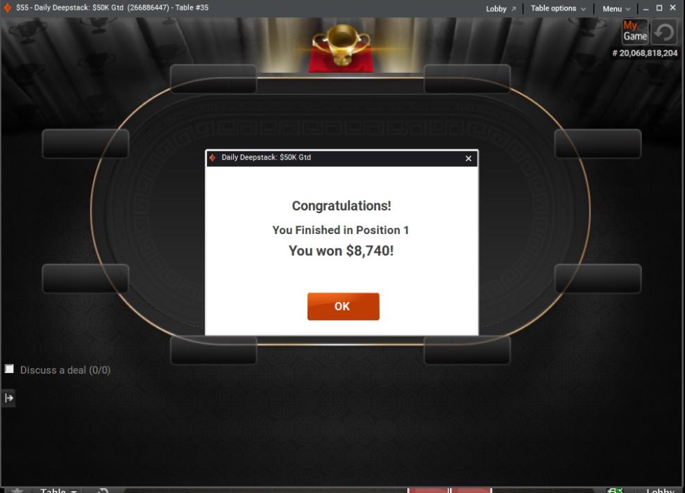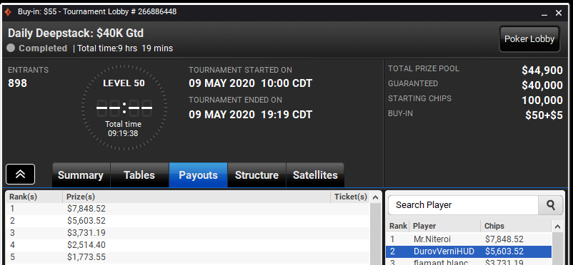 Сегодня сыграли две финалки — на одной вылетели в первой раздаче (650евро примерно дали), а вот на другой сыграли все до последней