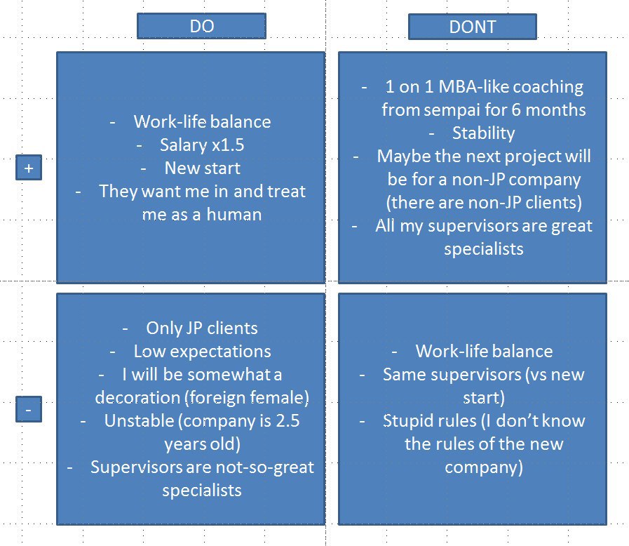 Однако, мне говорили, что я смогу быть global human resource, но оказалось, что все клиенты у них - японские компании, и я вообще не поняла, где там хоть каким-то макаром планируется английский или глобализация.