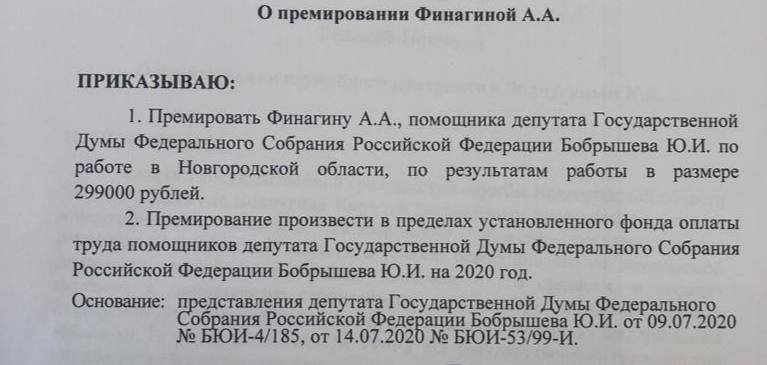 Настя Финагина за «тяжелейший и ответственный труд» премирована с барского плеча Юрия Иваныча суммой в 299 тысяч рублей!