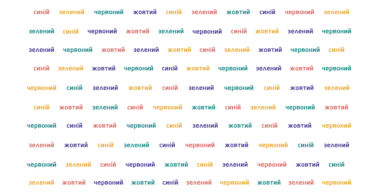 Якщо у вас виходить швидко перемикатися з читання слів на озвучення кольорів, то ваше когнітивне мислення досить гнучке. Якщо не вдається правильно називати кольори — не ставте хрест на своїй гнучкості мислення, а просто продовжуйте тренуватися😉