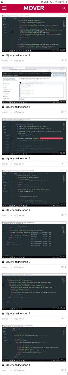 Videolar turkumida jami 30 ta video bor va undagi bilimlar bilan o'z ish samaradorligingizni bir necha barobarga oshirishingiz mumkin bo'ladi. Xudo xohlasa, videolarni Moverga joylab, kerakli kod va matnlarni tayyorlab qo'yishimiz bilan ularni sekin-sekin e'tiboringizga havola qilamiz.