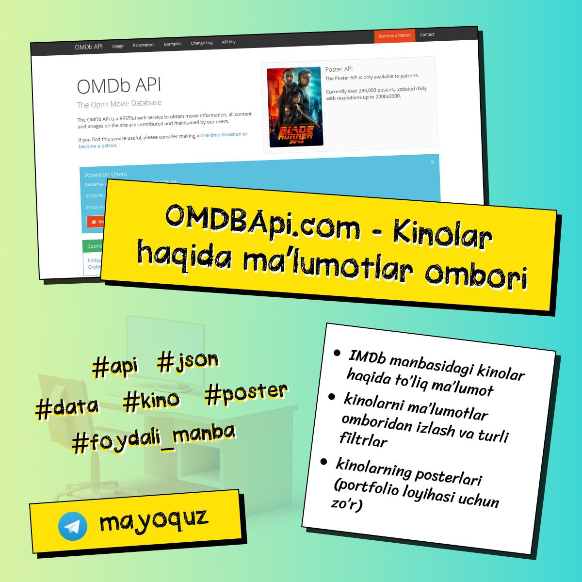 ⚒ Foydali manba: OMDbAPI - kinolar haqida ochiq ma'lumotlar ombori