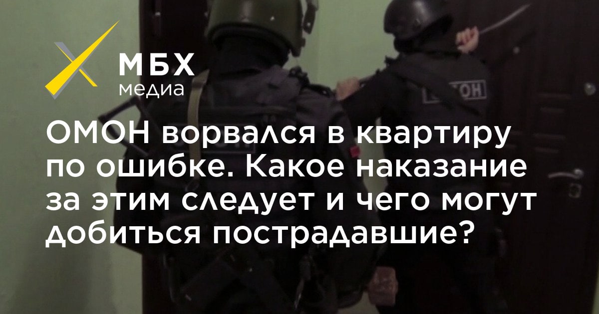 В Алтайском крае ОМОН по ошибке выломал дверь в квартиру, где проживала женщина с двумя детьми. После того, как силовики поняли, что ошиблись адресом, они просто уехали, даже не принеся извинений испуганной семье. Этот случай не уникален. «МБХ медиа» попросило адвоката Леонида Соловьева рассказать, какие последствия предусмотрены в таких случаях для правоохранителей