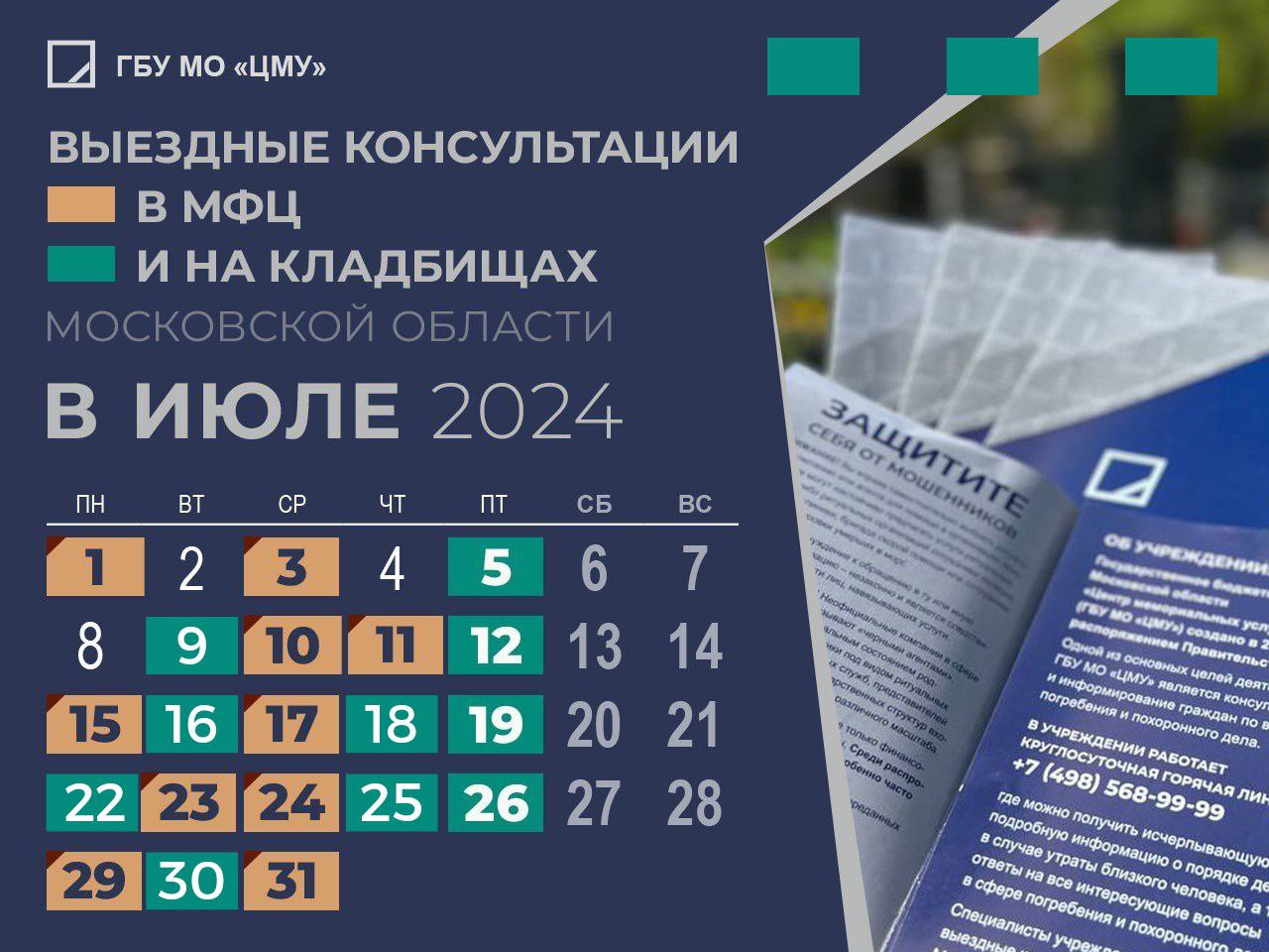 Выездные консультации на кладбища и в МФЦ Подмосковья в июле: