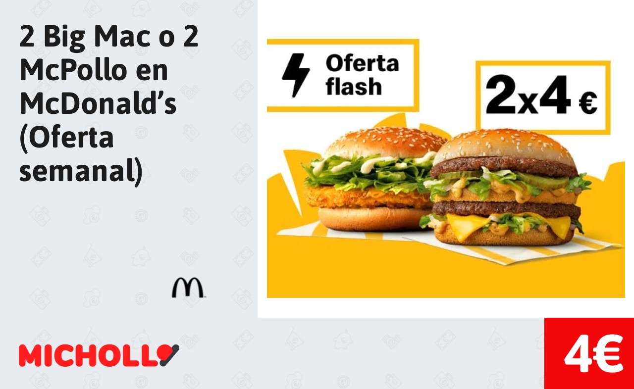 🔹 2 Big Mac o 2 McPollo en McDonald’s (Oferta semanal) solo 4€❗️❤️